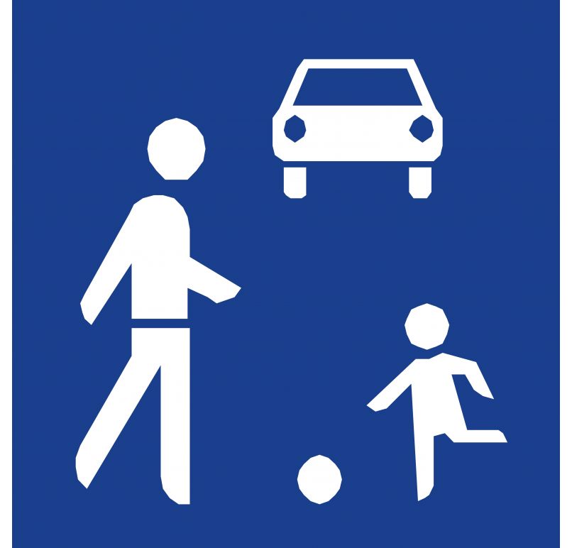 תמרור אשר מציין כניסה לרחוב שבו יש ילדים, כלי רכב ועוברי אורח.